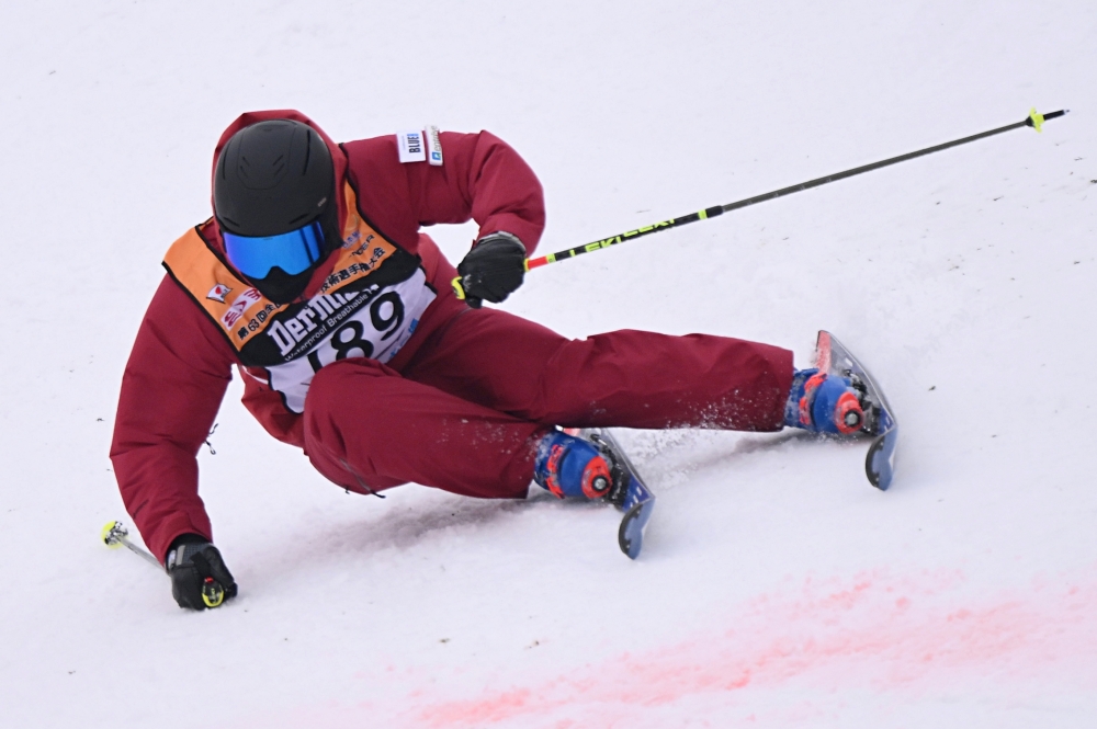 残る2種目は同時進行。「ショートターン不整地」(黒森山Bコース)では、福田司(栃木県)が276点をマークし、上位陣を退けて堂々の種目トップに。「下地が硬くて跳ねられそうになったけど、意地でねじ伏せた。何か一つでも目立ちたいと思って全力でいきました」(福田)。穴田もこれに続く275点の高得点。奥村との点差をわずかに縮める。