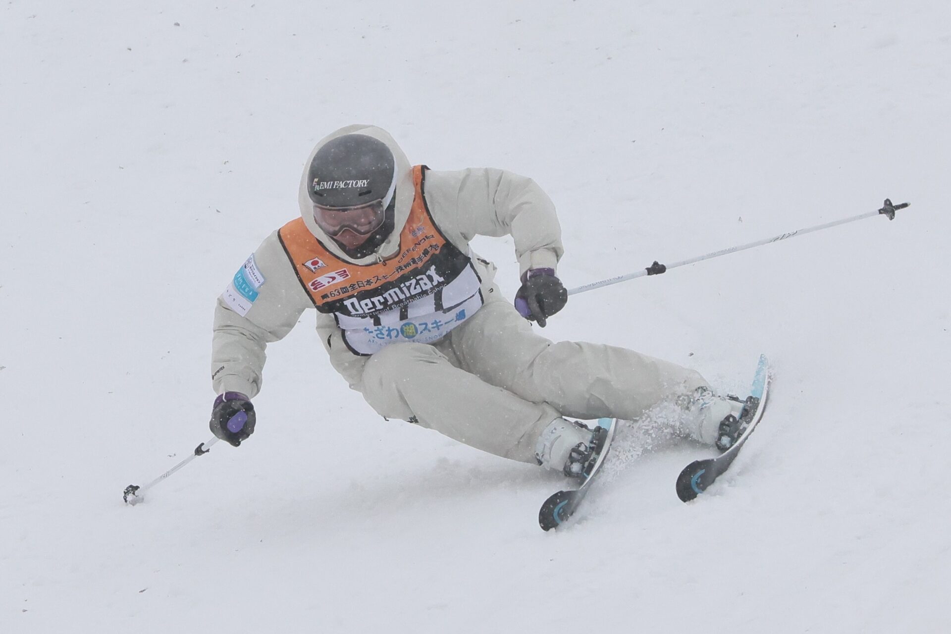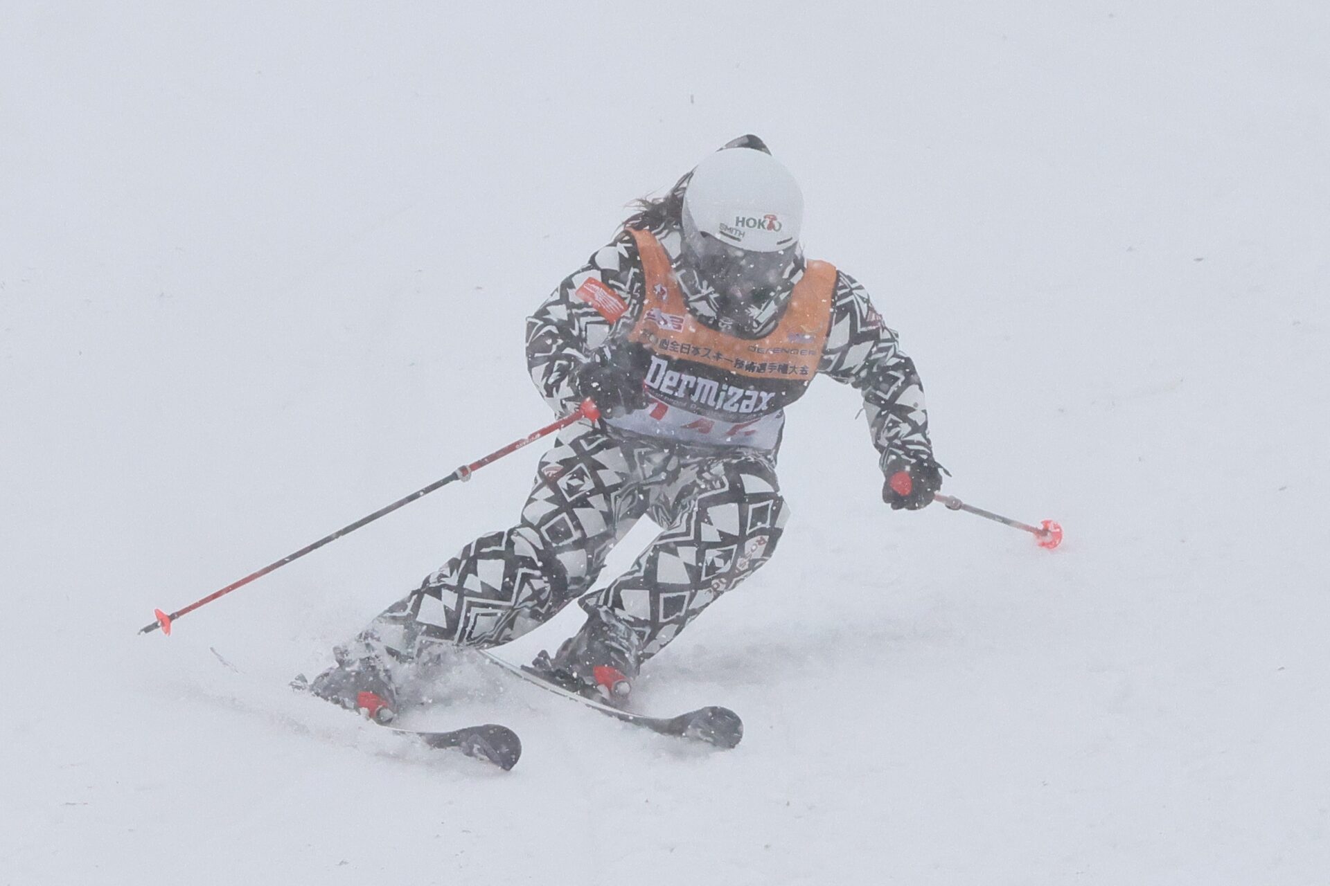 大会3日目。順調だった予選二日間から一転、決勝は悪天候に見舞われ、競技が難航。朝はコース整備で開始が30分遅れ、やっと始まったかと思うと強風でリフトが停止。予定されていた4種目のうち、1種目が途中でキャンセルとなる事態となった。その後も降りしきる雪と強風で、何度も競技が中断。残る3種目を何とか成立させる、過酷な一日となった。