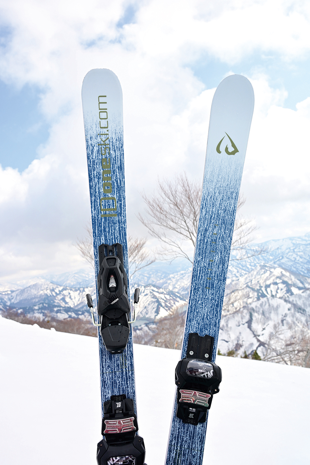 ID ONEのスキーは初体験。まずデザインがシンプルで好印象。手に取ると軽く、乗ってみても軽快で、スキーがよく回って小さなターン弧が描きやすい。悪雪でも不安定さがなく、取り回しがしやすいスキーという印象。中速ぐらいのスピード域でていねいなスキー操作を学びたい人におすすめ。