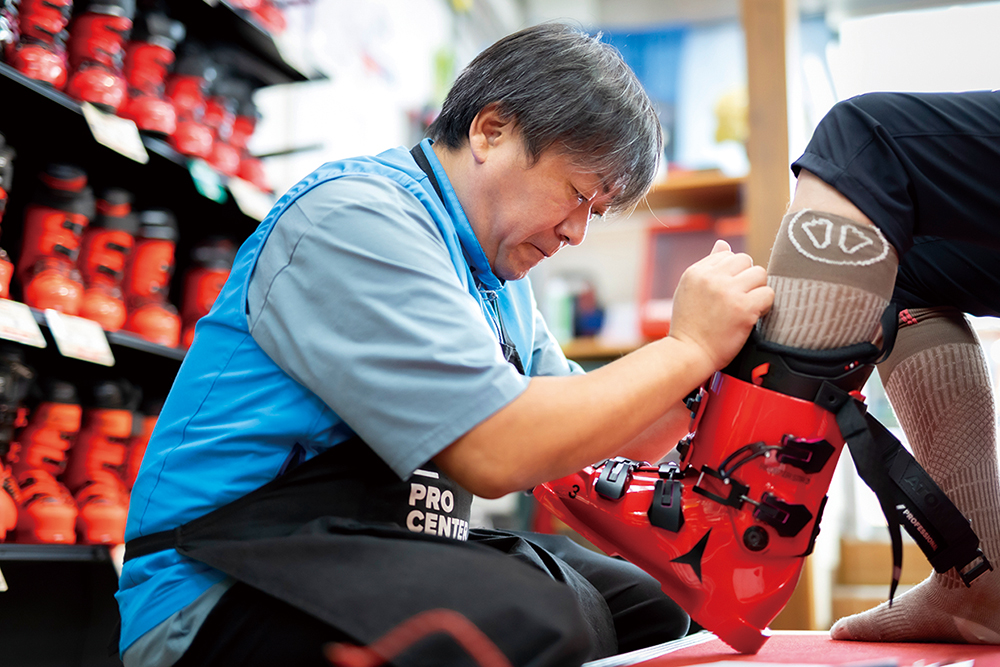 全国のスタッフは、それぞれの個性はあるにせよ、いずれも知見、技術、情熱を持ったプロ中のプロ。さらにアトミックによる年2回のトレーニングセミナーを受講し、技術や知識、情報をアップデートしている。そこに日々の経験を積み重ね、ギア選びやブーツのカスタマイズなど、アトミックプロセンターならではのサービスを提供している。