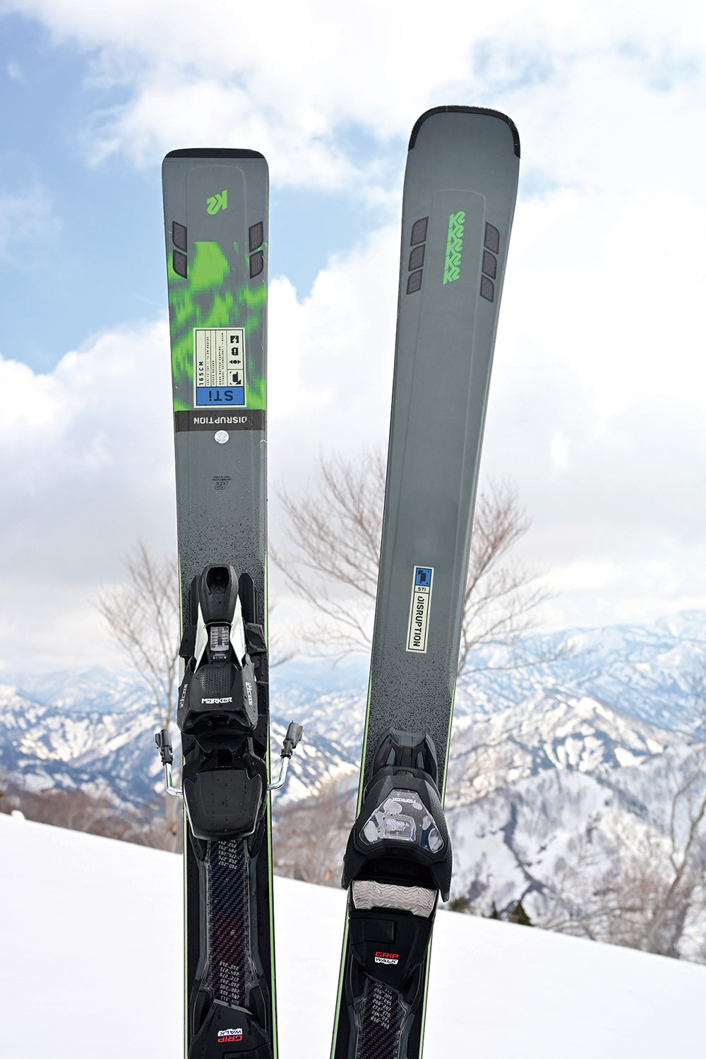 四角いフォルムが印象的なワイドボディタイプのスキー。トップがしっかり食い込み、ターン前半の形をきれいにつくれ、後半まで円いターンへとつないでくれる。小回りが利くタイプではないが、中~大回りならどんな状況でも走破してくれそうなオールシチュエーションスキーというイメージ。