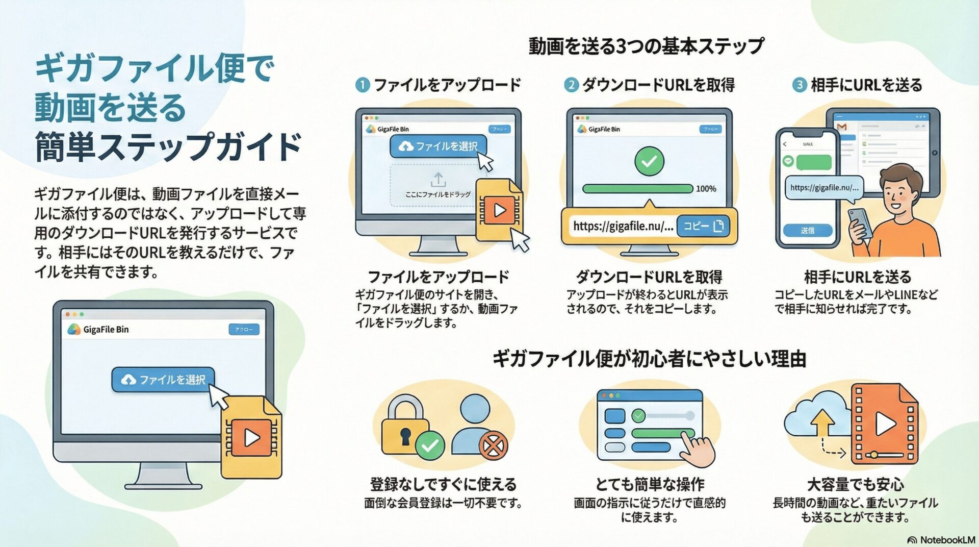 ①撮影した滑りの動画を1本、大容量ファイル送信サービス(ギガファイル便、データ便、firestorageなど)でアップロード